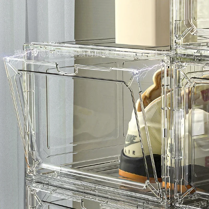 Keep your shoes and small items neatly organized with these stackable shoe storage boxes designed for modern homes. Featuring a transparent body and front opening door, these boxes let you easily see and access your items while keeping them protected from dust and clutter.